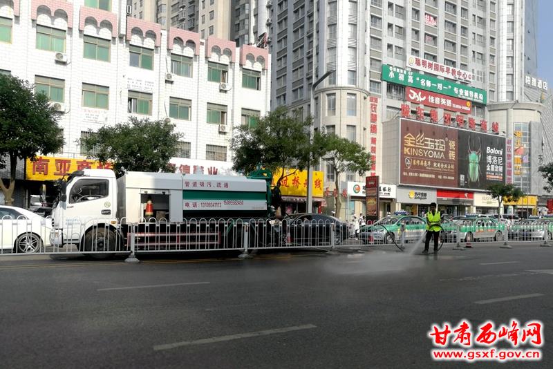 突出重点区域,持续开展精准治污抑尘。结合监测点数据变化及通报的问题路段,确定重点区域、重点路段,固定作业车辆,采取全天候巡回冲洗、不间断雾化降尘和机械化清扫相结合的综合治理模式,提高精准抑尘质量和效果,确保庆阳五中片区、弘化路片区、陇东学院片区、庆化大道、长庆大道、九龙路、朔州西路、西大街等重点区域扬尘污染得到有效控制,整治成果得到有效巩固。同时坚持每周二对五中校园内道路、操场、墙体、树木进行冲洗除尘作业,并配合清扫车开展湿法洗扫作业。
